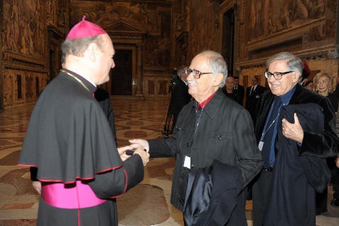 Tra i registi l'immancabile Franco Zeffirelli, Pupi Avati, Mario Monicelli, Marco Bellocchio, Nanni Moretti, Giuseppe Tornatore, Liliana Cavani e Kryzstof Zanussi e i fratelli Taviani. Tra i 260 c'erano anche ballerine di fama mondiale come Carla Fracci e Liliana Cosi, oltre ai registi teatrali come Maurizio Scaparro e Luca Ronconi. Tanti, puntuali, arrivati alle 11. L'arte nella Cappella Sistina per un incontro fortemente voluto dal presidente del pontificio consiglio della cultura, monsignor Gianfranco ravasi.